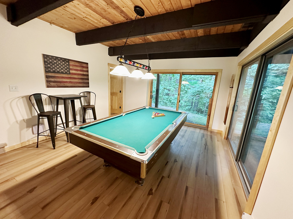 We know that you'll love your stay at the Trailside Road Chalet. Our guests love the wooded lot, the babbling brook and being close to the slopes at Okemo and the conveniences of Ludlow village. The layout of the home is perfect for gatherings of family and friends with five bedrooms, two baths and two living rooms. Curl up by the fireplace, play a game of pool on our pool table, enjoy the books and games we have in our collection, explore all that the area has to offer and enjoy the company of one another in this beautiful setting.